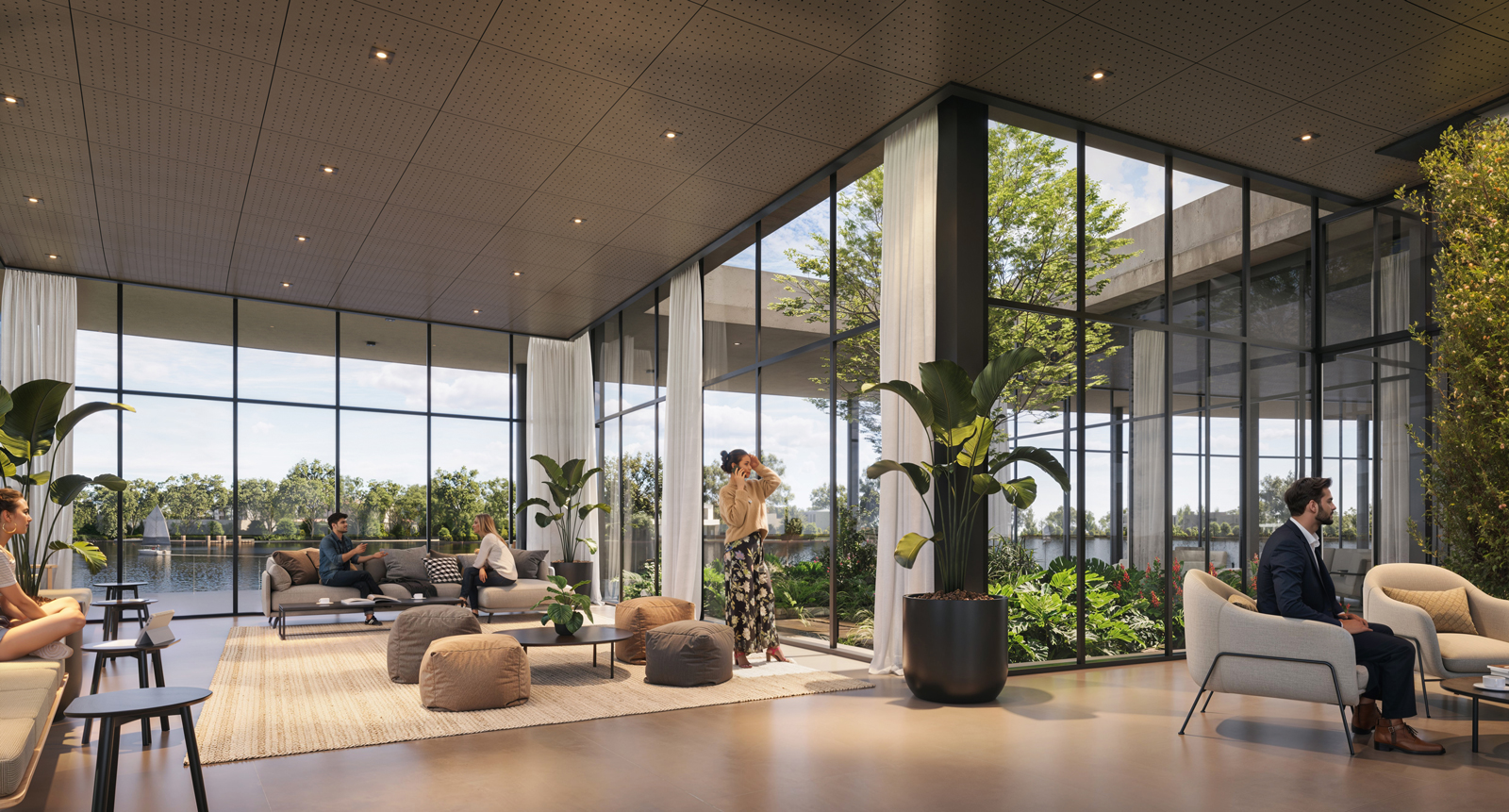 Un espacio para trabajar con vistas a la laguna en un ambiente relajado y dar respuestas a las necesidades de la vida moderna.
